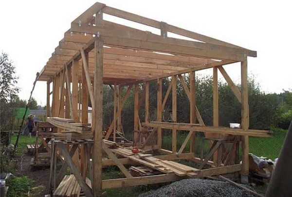 Оптимальный вариант кровли для недорогого гаража – односкатная. Материалом для каркаса послужат перекладины из дерева или металла, а для обрешётки подойдёт вагонка. При выборе материалов для крыши не забудьте учесть климат вашего региона. Для южных мест можно применить лёгкую обрешётку. Для более холодных областей нужно уделить созданию кровли более пристальное внимание, потому что она должна быть рассчитана на сильный ветер, осадки, снега и т. п.