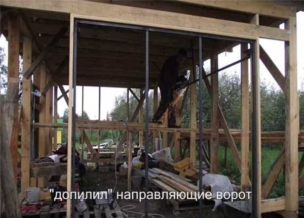 После сборки каркаса надо обдумать установку ворот. Эта часть строительства очень важна, так как любая неточность может привести к тому, что двери гаража просто не будут открываться. Сварить раму ворот можно из металлических уголков, а в качестве обшивки использовать листы профнастила.
