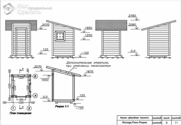Схема деревянного туалетаСтроительство деревянного домика пошагово