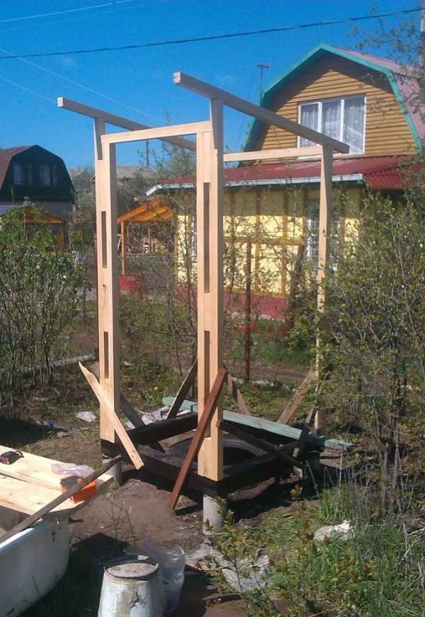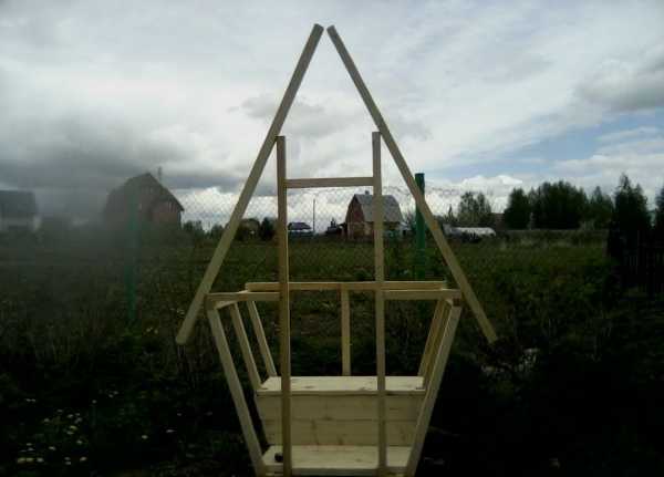 Важно: при раскрое вертикальных опор одну пару делают немного короче второй. Это позволит установить крышу наклонно, чтобы на ней не задерживались вода и снег.