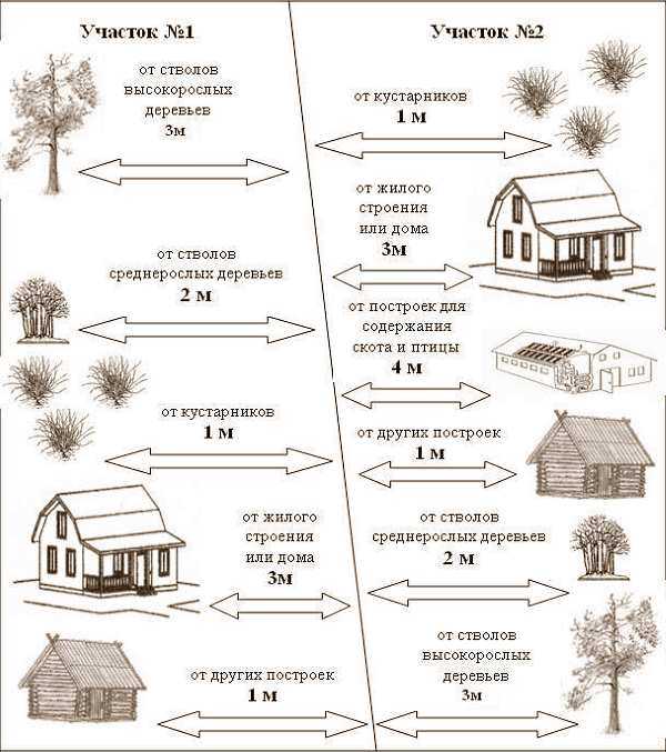 - От ствола ближайшего дерева – 4 м, а от кустарников – 1 м.
