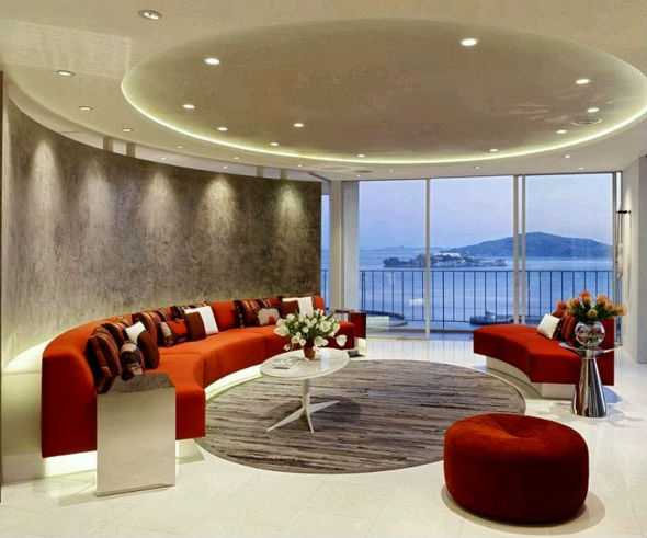 Дизайн потолка зала с применением гипсокартона многообразен. Основные приемы финишного декорирования: