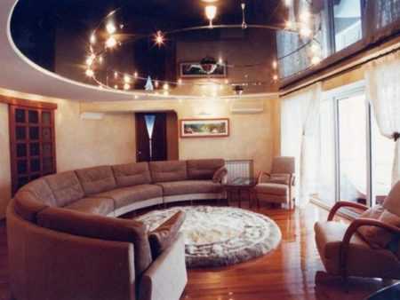 Остается только посмотреть фотографии натяжных потолков в гостиных и выбрать то, что вам будет нравится: