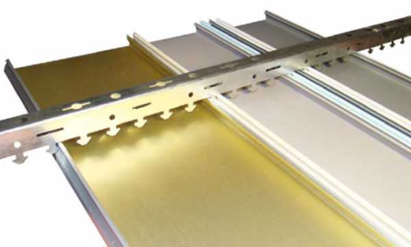 - направляющий профиль – траверс. Планка, изготавливаемая из алюминия или оцинкованной стали со специальными узкими стыками для фиксации рейки;