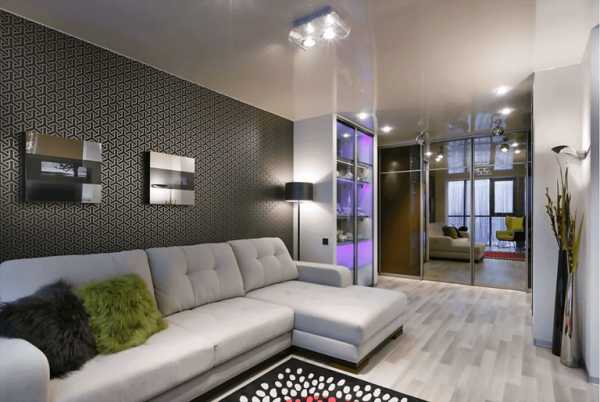 Если помещение маленькое, то не стоит перебарщивать с дополнительными элементами, так как это визуально его уменьшит. Хорошо будут смотреться гладкие потолки в белых или серых цветах.