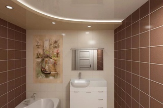 Дизайн натяжных потолков распечатываю в ванной (фото интерьеров)