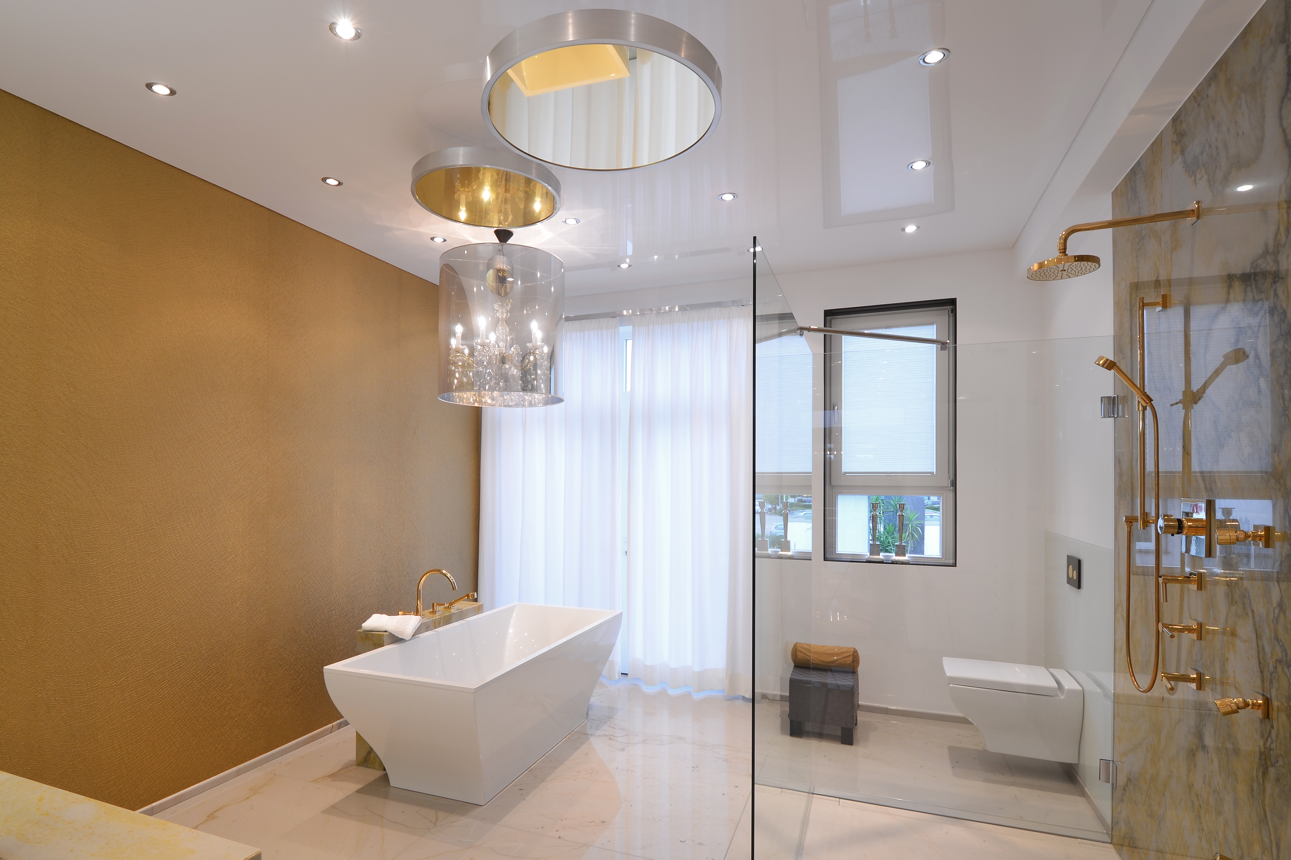 Примеры натяжных потолков в ванной