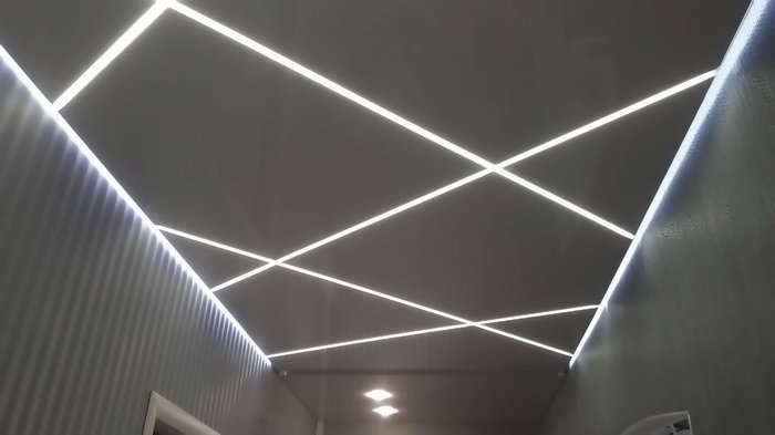 В этом случае комбинируется сразу два способа – монтаж гипсокартонного короба и обустройство ниш для светодиодных светильников. При этом гипсокартонные листы не применяются.