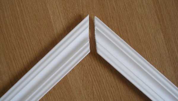 Противоположная планка делается таким же образом, только зеркально. Для создания ровных углов в деталях из пенополистирола и ПВХ внутреннюю сторону лучше отрезать строительным ножом или ножовкой для металла.