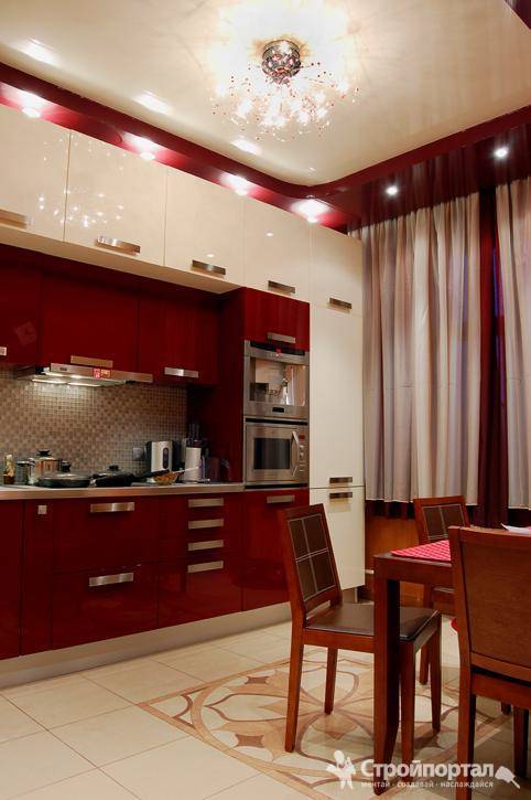 Натяжной потолок на кухне: варианты дизайна
