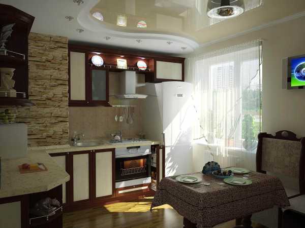 Еще одним весомым «плюсом» гипсокартонных потолков является возможность создания «многоуровневых поверхностей», что, несомненно, дает большой простор для воплощения самых разнообразных дизайнов кухни.