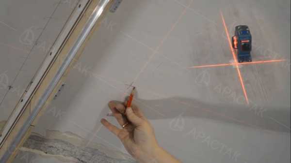 В первую очередь нужно определить контур, по которому будет проходить полотно. Для этого понадобится лазерный уровень. Можно использовать и гидроуровень, но первый точнее, да и работать с ним легче. Поэтому остановимся на лазерном.