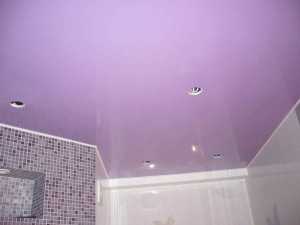 Натяжные потолки считаются идеальным вариантом для ванной. Такие потолки не приносят вред здоровью, материалы нетоксичные, а также реализуются в широком цветовом спектре. Поэтому данный выбор подойдет, если вы хотите воплотить в жизнь яркий красивый дизайн: можно выполнить розовый, сиреневый или яркий красный потолок. Это весьма затратная возможность отделать верхнюю часть санузла. Но, если подходить, к проблеме с практической стороны, важно учитывать, что потолок такого типа послужит длительный строк – более 15 лет.