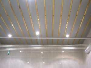 Несколько слов уделим реечным конструкциям. Мы привыкли видеть их в офисных и общественных помещениях, однако реечные потолки можно успешно использовать в помещениях жилого типа и ванных комнатах. Легкий вес и отсутствие швов, влаго- и износоустойчивость, многообразие дизайнерских и цветовых решений, огромные возможности для художественного обустройства потолочного пространства. С простой и быстрой технологией крепления панелей может справиться абсолютно любой желающий.