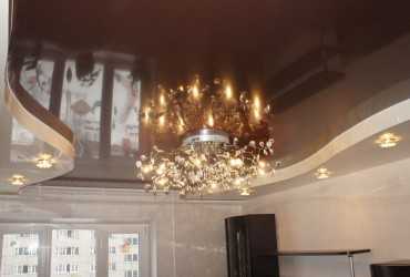 - — Многоуровневая форма. Применяется для выделения зон в пределах одной комнаты. Оригинальным будет смотреться дизайн из разных по фактуре потолочных полотен. Например, натяжные потолки двухуровневые в зал из матового и глянцевого полотна.
