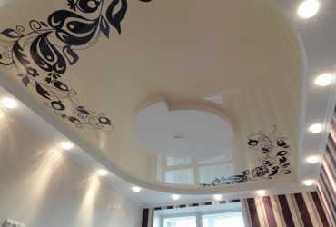- арт-печать – особый вид натяжного потолка. Используя всевозможные узоры, фотографии, пейзажи и любые рисунки, потолок в гостиной можно превратить в объект искусства и тем самым подчеркнуть изысканность комнаты;