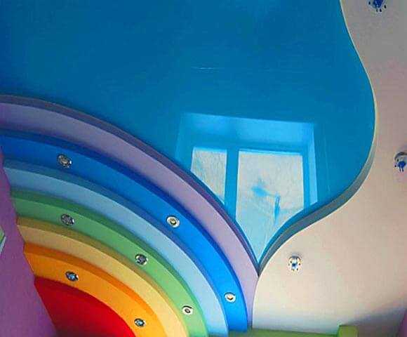 Поэтому основным критерием при оборудовании потолка будет являться его богатая фактура, оригинальная конструкция, яркая расцветка.