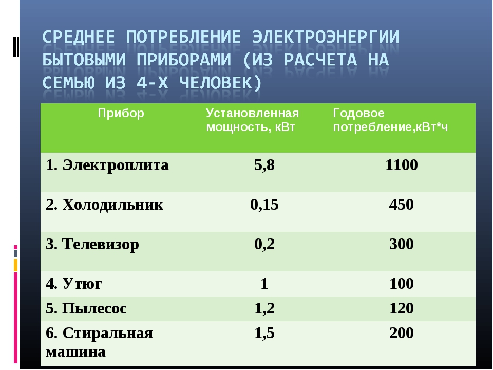 Для более точного расчета потребляемой мощности необходимо учитывать характеристики: