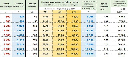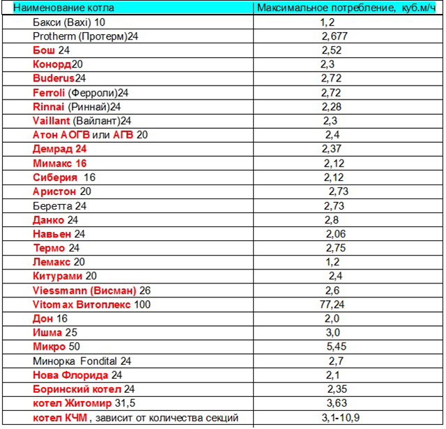 Приведенная таблица ниже поможет сравнить разницу в потреблении газа и покажет мощность котла по отношению к тому, сколько потребляется газа: