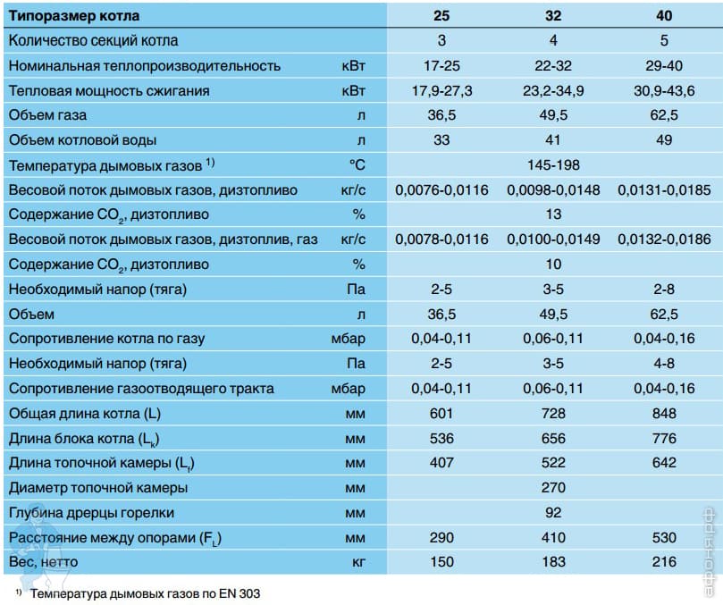 | Мощность котла (кВт) | Потребление газа, м3 / час | Потребление сниженного газа, л3 / час |
