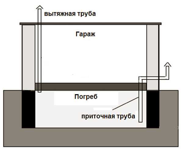 Схема вентиляции гаража и погреба.