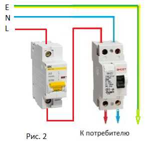 Дело в том, что устройство не защищено от перегрузки и от короткого замыкания, поэтому оно всегда работает в паре с автоматом (Рис. 2). Номинал автомата не должен превышать допустимый ток узо. Например, защитное устройство рассчитано на 40А, и автомат должен быть с номинальным током ниже 40А.