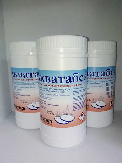 Дезинфицирующее средство Акватабс прошло натурные испытания и используется во многих странах мира. Зарегистрировано в России в 1996 году и с тех пор широко применяется для обеззараживания воды и других объектов.