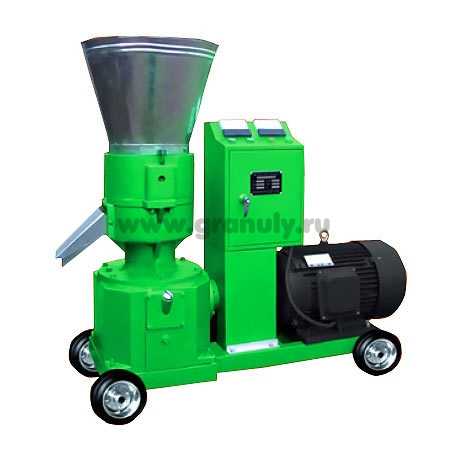В съемную часть гранулятора фиксируют матрицу с катками, закрепленными стопорными винтами. Из металлического прокатного профиля изготавливается станина с электропроводом, связанным с редуктором гранулятора. Для пеллетного электропривода достаточно мощности 15 кВт.