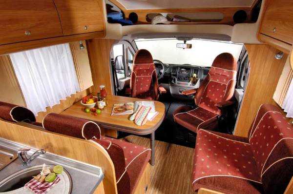 Конструкция таких автодомов облает некоторыми отличительными особенностями. Так, к примеру, в верхней части кузова расположенной прямо над водительской кабиной предусмотрено спальное место. Такие дачи на колесах обладают душевой кабинкой, отдельной кухней с плитой и холодильником, а также несколькими спальными местами.