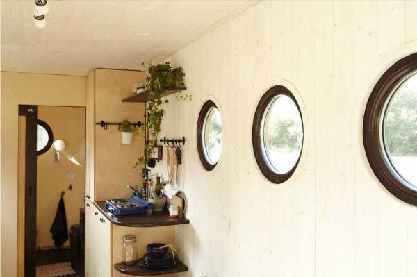 Идея Tiny House Movement пришлась по душе обитателям многих стран. Данный дом в виде фургона на колесах находится в Вене. На его территории в 25 кв.м есть все нужное для жизни – кухня, ванная, душ, кровать, жилая зона. За самостоятельность берут на себя ответственность ясные батареи, биотуалет, система чистки примененной и дождевой воды (вследствие фильтрам на крыше из болотных растений) и дровяная печь.