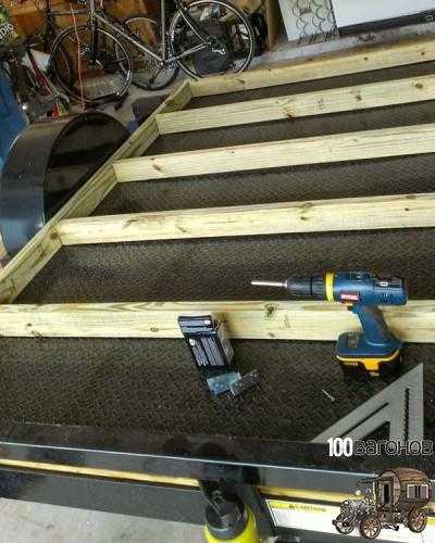 Все началось с приобретения прицепа. Затем по имеющимся габаритам был создан каркас пола. Параллельные балки небольшой высоты отлично подходят для укладки в них изоляционного материала типа стекловаты.