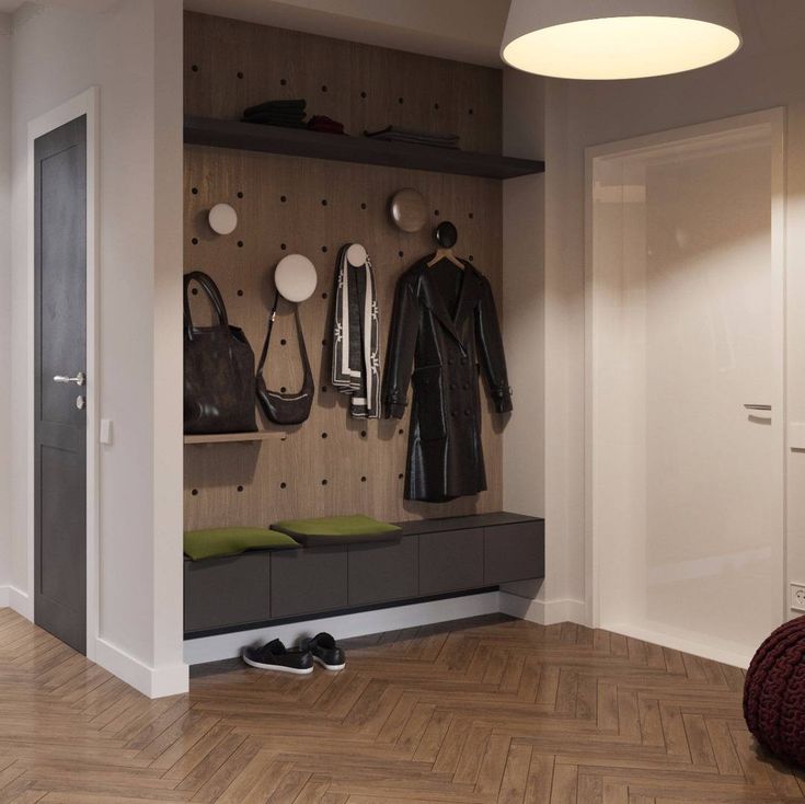 Пространство прихожей часто имеет углубления или выемки, в которых можно расположить удобную раздевалку