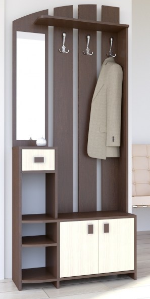 Помните о том, что кроме внутренней части занимают определенное место и стенки, сам механизм дверей, двери, и как итог, мебель занимает немалое пространство. В то время как вешалки открытого типа позволяют хранить одежду на крючках, а не актуальную на какой-то сезон одежду можно хранить в небольшой гардеробной в другом месте.