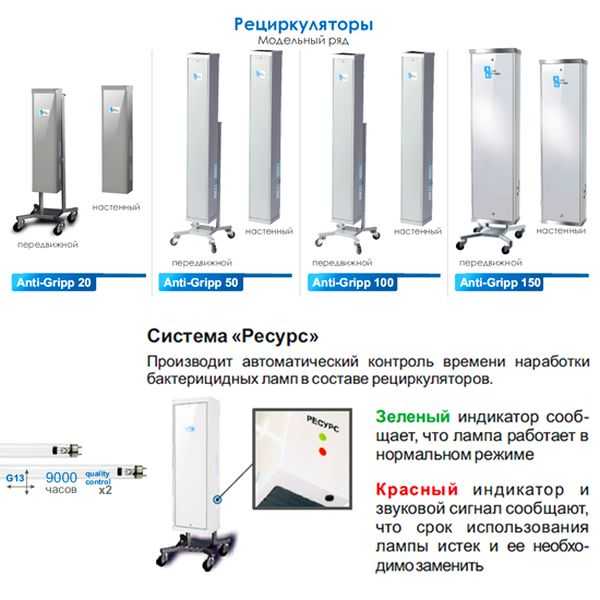 Модели бактерицидных ламп и УФ-рециркуляторов