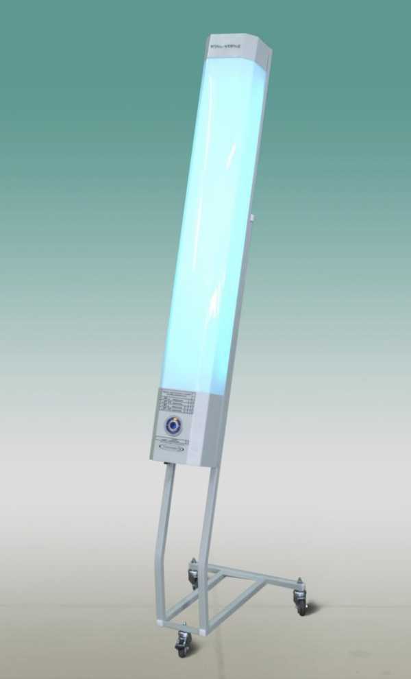 Напольный передвижной прибор, который легко перемещать по дому. Модель рассчитана на 6 ультрафиолетовых ламп, эффективно дезинфицирует помещения площадью от 20 кв. м. По типу облучатель относится к открытым, поэтому не может использоваться в присутствии людей.