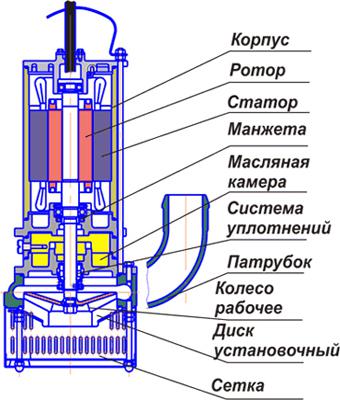 - масляная камера для охлаждения агрегата, если он не погружной;