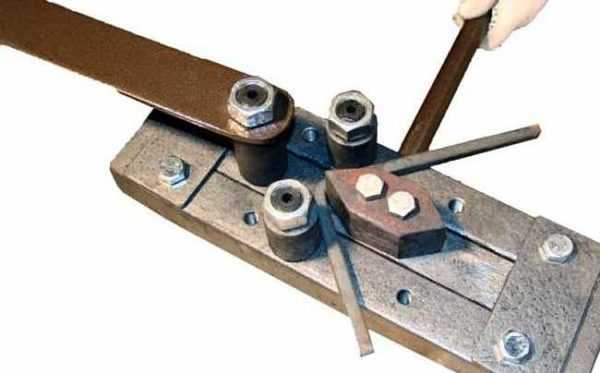 - ΠΠ½ΡΡΠΈΠΊ. ΠΠ½ ΠΏΡΠ΅Π΄Π½Π°Π·Π½Π°ΡΠ΅Π½ Π΄Π»Ρ ΠΈΠ·Π³ΠΈΠ±Π°Π½ΠΈΡ ΠΌΠ΅ΡΠ°Π»Π»ΠΈΡΠ΅ΡΠΊΠΈΡ ΠΏΡΡΡΠΎΠ² (ΡΡΠΎ ΡΡΠ½ΠΎ ΠΈΠ· Π½Π°Π·Π²Π°Π½ΠΈΡ), ΠΏΡΠΈ ΡΡΠΎΠΌ ΠΌΠΎΠΆΠ½ΠΎ Π·Π°Π΄Π°ΡΡ Π°Π±ΡΠΎΠ»ΡΡΠ½ΠΎ Π»ΡΠ±ΠΎΠΉ ΡΠ³ΠΎΠ» ΠΈΠ·Π³ΠΈΠ±Π°. ΠΠ½ ΡΠ°ΠΊΠΆΠ΅ ΠΏΠΎΠ·Π²ΠΎΠ»ΠΈΡ ΡΠΎΠ·Π΄Π°ΡΡ ΡΠ·ΠΎΡΡ Π² Π²ΠΈΠ΄Π΅ Π΄ΡΠ³ΠΈ. ΠΠΎΠ½ΡΡΡΡΠΊΡΠΈΠ²Π½ΠΎ ΠΎΠ½ ΡΠΎΡΡΠΎΠΈΡ ΠΈΠ· Π·Π°ΠΆΠΈΠΌΠ° Ρ ΡΡΠ΅ΠΌΡ ΡΠΏΠΎΡΠ°ΠΌΠΈ, ΠΈΠ· ΠΊΠΎΡΠΎΡΡΡ Π΄Π²Π° ΡΠΏΠΎΡΠ° ΡΡΠ°ΡΠΈΡΠ½Ρ ΠΈ Π½Π°Ρ ΠΎΠ΄ΡΡΡΡ Π½Π° ΠΏΡΡΠΌΠΎΠΉ, Π° ΡΡΠ΅ΡΠΈΠΉ ΠΏΠΎΠ΄Π²ΠΈΠΆΠ½ΡΠΉ, ΠΈΠΌ ΡΠΎΠ±ΡΡΠ²Π΅Π½Π½ΠΎ ΠΈ Π³Π½ΡΡ ΠΌΠ΅ΡΠ°Π»Π», Π²Π΄Π°Π²Π»ΠΈΠ²Π°Ρ Π·Π°Π³ΠΎΡΠΎΠ²ΠΊΡ ΠΌΠ΅ΠΆΠ΄Ρ Π΄Π²ΡΠΌΡ Π½Π΅ΠΏΠΎΠ΄Π²ΠΈΠΆΠ½ΡΠΌΠΈ. ΠΠ»Ρ ΡΠ½ΠΈΠΆΠ΅Π½ΠΈΡ ΡΠΈΠ»Ρ, ΠΊΠΎΡΠΎΡΡΡ Π½Π΅ΠΎΠ±Ρ ΠΎΠ΄ΠΈΠΌΠΎ ΠΏΡΠΈΠ»ΠΎΠΆΠΈΡΡ Π΄Π»Ρ ΡΠ³ΠΈΠ±Π°Π½ΠΈΡ Π·Π°Π³ΠΎΡΠΎΠ²ΠΊΠΈ, Π΅ΡΡΡ ΡΠΈΡΡΠ΅ΠΌΠ° ΡΡΡΠ°Π³ΠΎΠ², ΠΊΠΎΡΠΎΡΠ°Ρ ΠΏΡΠΈΠ²ΠΎΠ΄ΠΈΡ ΡΡΠ΅ΡΠΈΠΉ ΡΠΏΠΎΡ Π² Π΄Π²ΠΈΠΆΠ΅Π½ΠΈΠ΅.