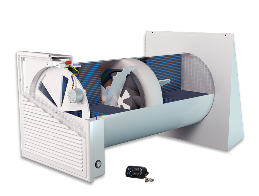 По сути, принцип принудительной приточно-вытяжной вентиляции отличается от естественной только тем, что воздух нагнетается в помещение вентилятором, встроенным в приточный вентканал. Такие системы раньше устанавливались преимущественно в производственных цехах, концертных залах, крытых стадионах и т.п. Их преимущество в том, что они гарантируют нормальный воздухообмен и позволяют его контролировать.