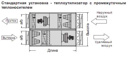 В этом случае используют промежуточный теплоноситель, циркулирующий между воздуховодами по изолированному трубопроводу. В качестве среды для передачи тепловой энергии используют воду или водно-гликолевый раствор, циркуляцию которого обеспечивают работой .