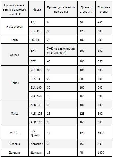 Прежде чем покупать приточный клапан, необходимо сравнить главные параметры разных моделей: