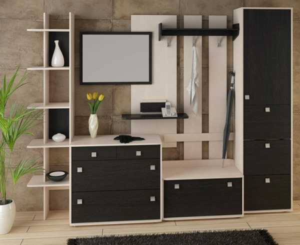 Самыми оптимальными предметами интерьера можно назвать модульную мебель, так как она практичная, продается в большом ассортименте а может быть сделана под заказ. Она позволяет с течением времени видоизменять обстановку в коридоре без вложений и проведения ремонта.