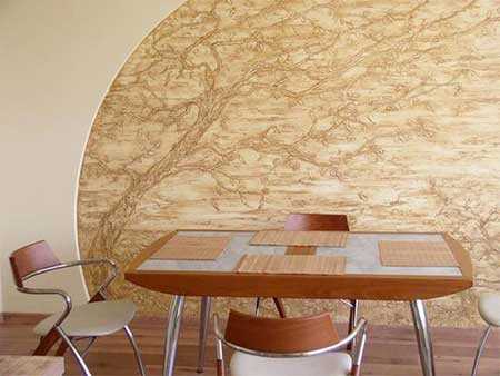 Также, такой материал может выступать и как декорирующая поверхность, но скорее это является исключением из правил. В таком варианте рулонная пробка используется для украшения стен. Изготавливается она также из спрессованной крошки древесины.