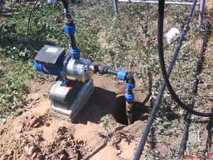 Кроме бура и труб с резьбой для этого метода еще необходима помпа. Перед началом работ возле будущей скважины копаются два приямка. В первом оседает основное количество грунта, во второй поступает вода, лишенная большей части примесей. Воды для процесса надо немного — она постоянно циркулирует. Из первого приямка периодически осадки убирают обычно совковой лопатой. При необходимости, если вода стала слишком уж грязной, ее можно заменить. Ее откачивают при помощи той же помпы, только не подают в скважину, а сливают куда-то на участок. Залив новую партию воды можно бурение продолжать.