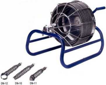 Подобные устройства в качестве рабочей части используют металлические тросики для прочистки канализации, которые погружают в трубу.