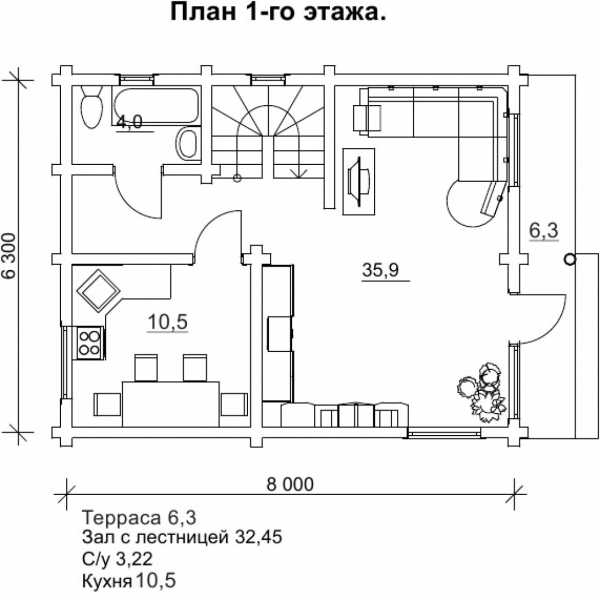 - Не забудьте о наличии санузла, для него не нужно много места – хватит 2 кв. м. Оставшуюся часть занимает терраса.