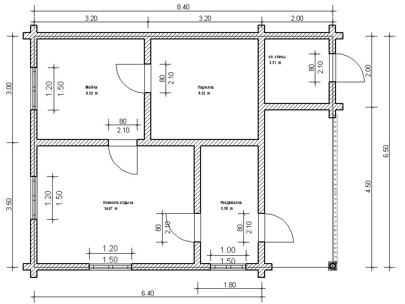 Если вы планируете сделать баню на одного-двух человек, то достаточно будет постройки размерами 2х3 м или 3х4 м, если же компания большая, то нужно делать баню не меньше 6х6 м.