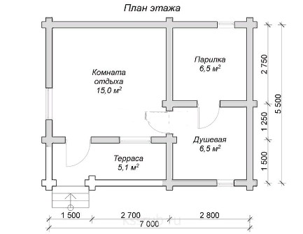 Нередко кроме комнаты отдыха делают и террасу. Преимуществом наличия террасы является возможность провести время не в помещении, а на свежем воздухе. Для экономии некоторые убирают комнату отдыха из проекта и заменяют ее террасой. Но подобный вариант имеет существенный недостаток: баню можно будет использовать исключительно в теплое время.
