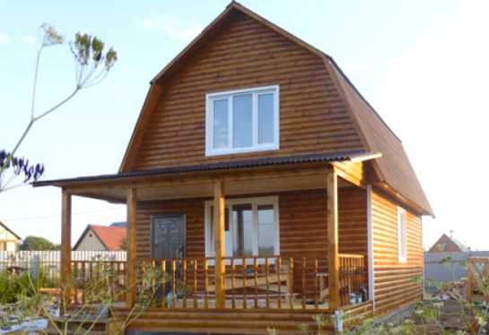 Красивая вязка венцов служит главным украшением фасада. Единственное замечание – нерациональное использование пространства мансарды. Двускатная крыша забирает у помещений второго уровня много полезной площади. В этом отношении ломаная кровля выгоднее.