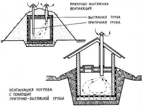 Чтобы припасы на зиму хорошо сохранились, следует правильно организовать вентиляцию. Если воздух будет активно перемещаться по погребу, влажность будет сохраняться на оптимальном уровне. Существует 2 способа выполнения вентиляции: