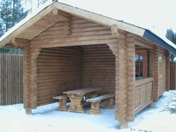 Для любителей классики можно рассмотреть бревенчатый вариант. Этот вариант беседок является моим любимым по внешнему виду, а про баню из сруба и говорить нечего. Многие опытные парильщики отдали своё предпочтение именно дереву, считая пеноблок и кирпич «не тем, чем нужно». Выбирая подобный комплекс, вы точно не прогадаете.